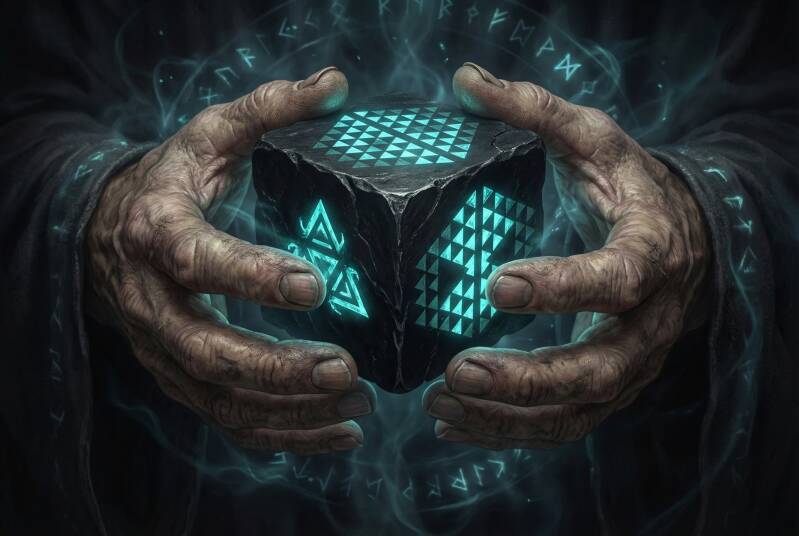Der Mann wandte sich ab und verließ schweigend den Raum. Die Tür glitt hinter ihm zu. Zurück blieb nur das Artefakt, dessen Runen immer heller brannten, während das uralte, mathematische Muster unablässig durch das Dunkel pulsierte.